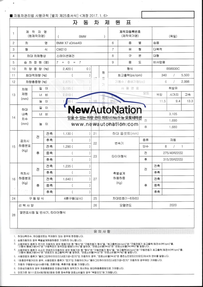 BMW X7 제원표 > 제원표